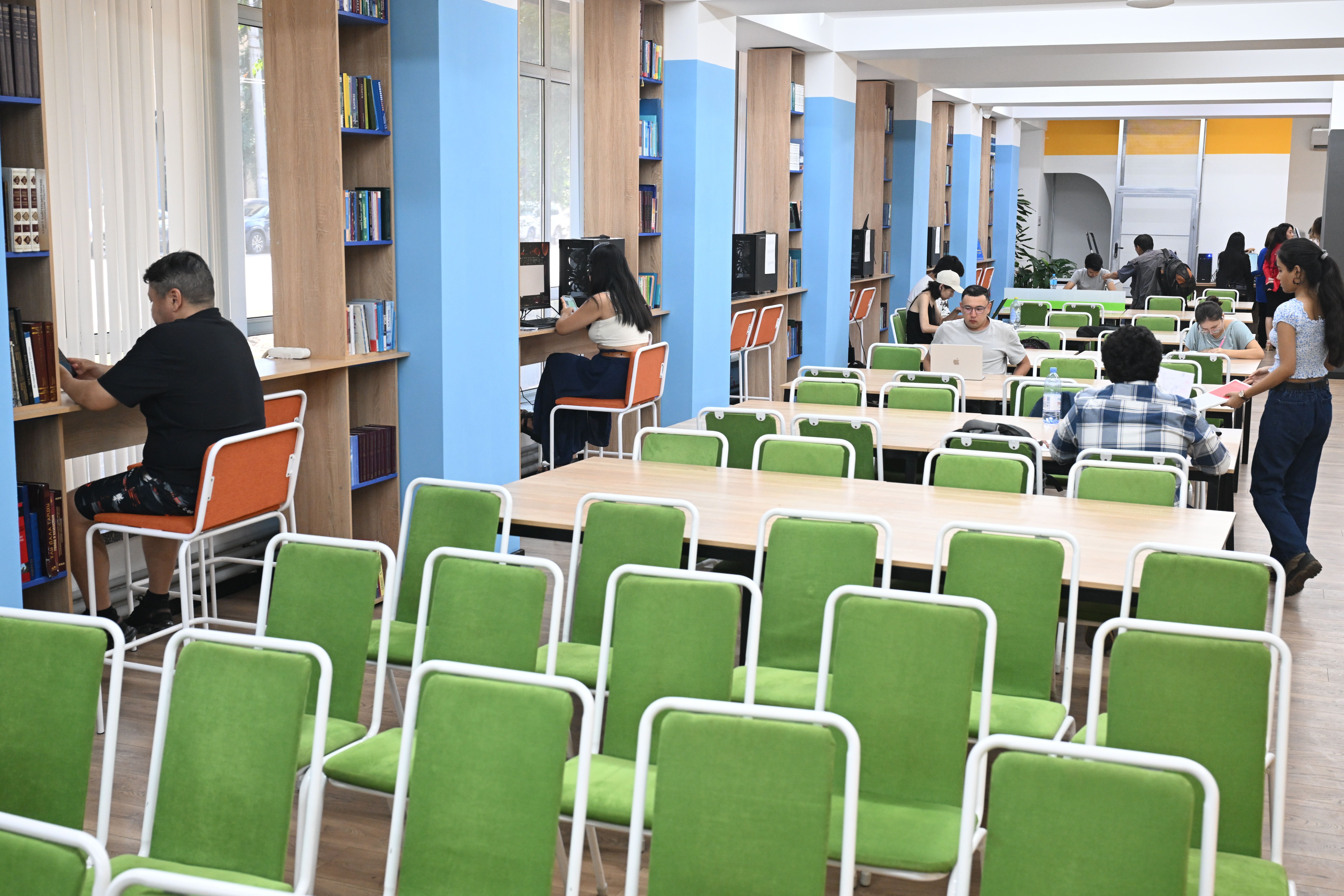 Кітапхана RFID жүйесін (радиожиілікті сәйкестендіру) енгізді, оған мыналар кіреді: